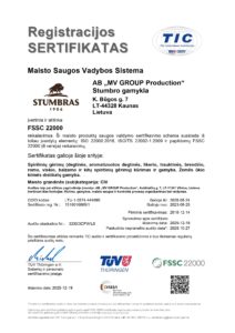 UAB „MV GROUP Production“ Stumbro gamykloje yra įdiegtos šios sertifikuotos sistemos: